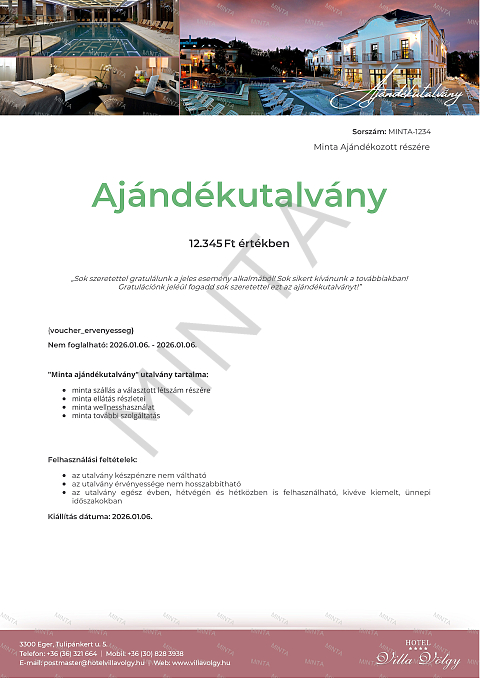 Az utalvány beváltható a szállodába közvetlenül történő online szobafoglalás során (az online foglalás folyamatában adja majd meg az utalvány sorszámát) vagy wellness részlegünkön és az éttermünkben igénybevett szolgáltatások esetében a helyszínen fizetéskor.